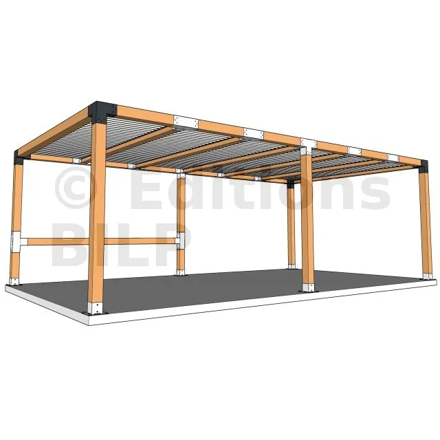 Il est utilisé dans un angle extérieur. Ce connecteur va permettre de raccorder une grosse poutre 120x120mm perpendiculairement à une poutre 120x120mm, le tout étant supporté par un poteau vertical 120x120mm.