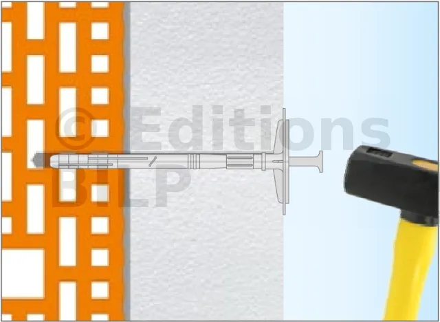 Cheville d’isolation à frapper avec clou en plastique, avec plaque de fixation coulissante - Réf. FIXPLUG10180(200)