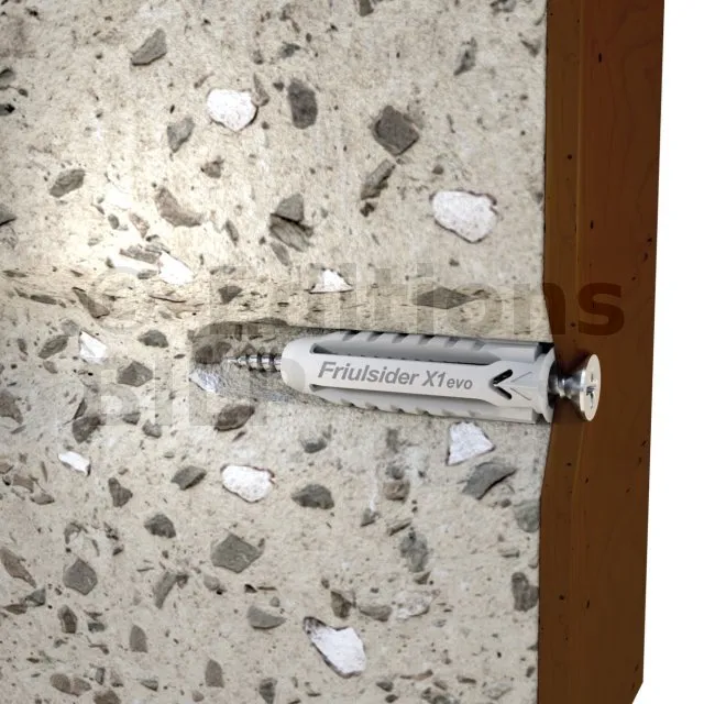 La cheville nylon universelle X1 evo, permet une fixation optimale d’éléments sur tous types de supports plein ou creux, notamment sur plaque de plâtre. Avec tous types de vis : vis filetage bois, vis filetage pas métrique. Avec un maintien large et stable grâce au 4 segments formant une rosace en arrière face du support lors de la pose.