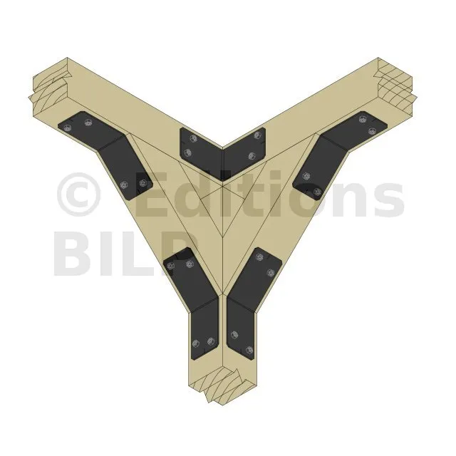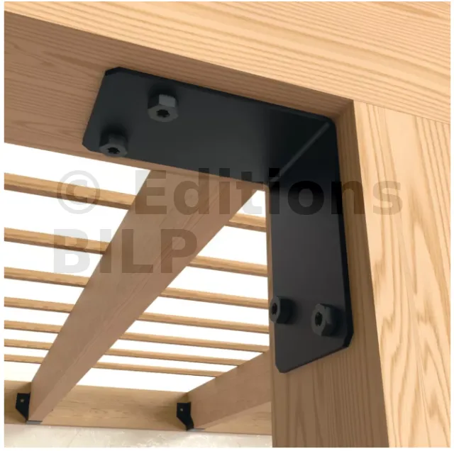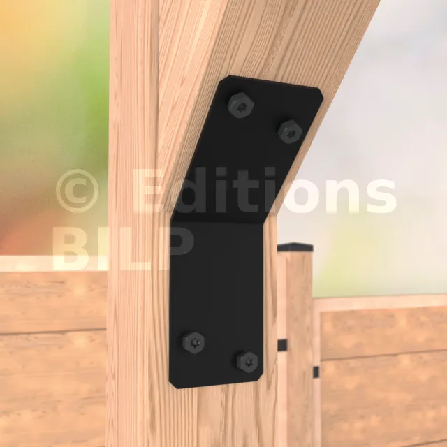 Équerre pour les assemblages de contreventements ou autres connexions à 135° présents dans les constructions légères de jardin telles que les pergolas.