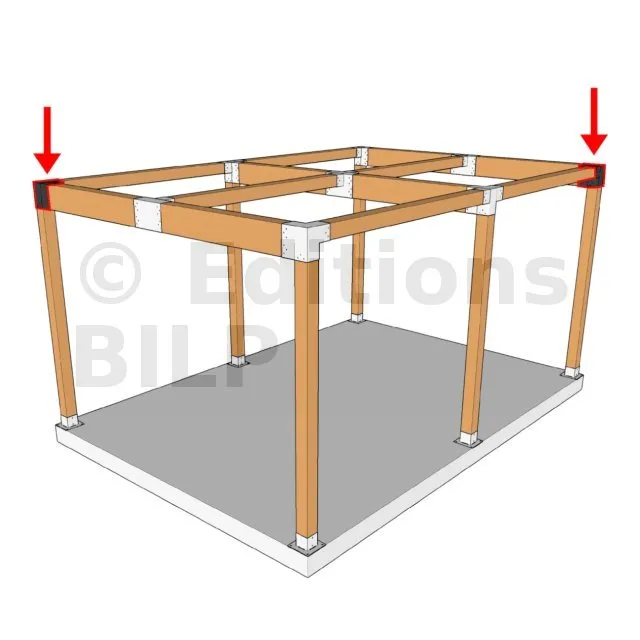 Il est utilisé dans un angle extérieur. Ce connecteur va permettre de raccorder une grosse poutre 240x120mm perpendiculairement à une poutre 120x120mm, le tout étant supporté par un poteau vertical 120x120mm.
