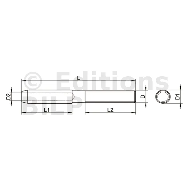 - Tige filetée droite à sertir : Elle a un filetage à droite, c’est-à-dire que pour visser la tige, il faut tourner dans le sens horaire (vers la droite).