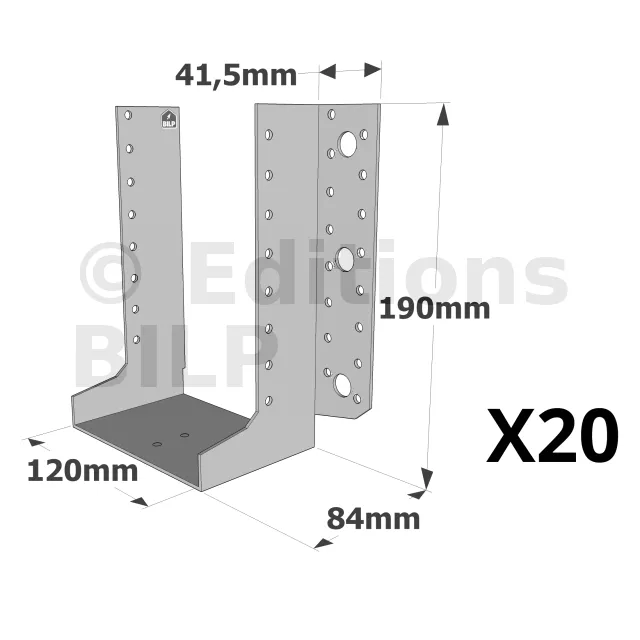 Sabots à ailes extérieures, gamme SAE CLASSIQUE (épaisseur 2mm, profondeur 84mm) - Réf. SAEL500/120/2_20