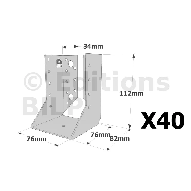 On admet une tolérance de 2 mm maximum entre l‘épaisseur du bois et la largeur du sabot. Exemple : un sabot plié à 76 mm peut porter une épaisseur de bois de 74 mm.