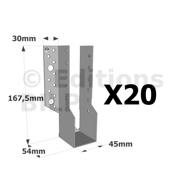 Sabots à ailes extérieures, gamme SBE ECONOMIQUE (épaisseur 1,5mm, profondeur 55mm) - Réf. SBE45/168_20
