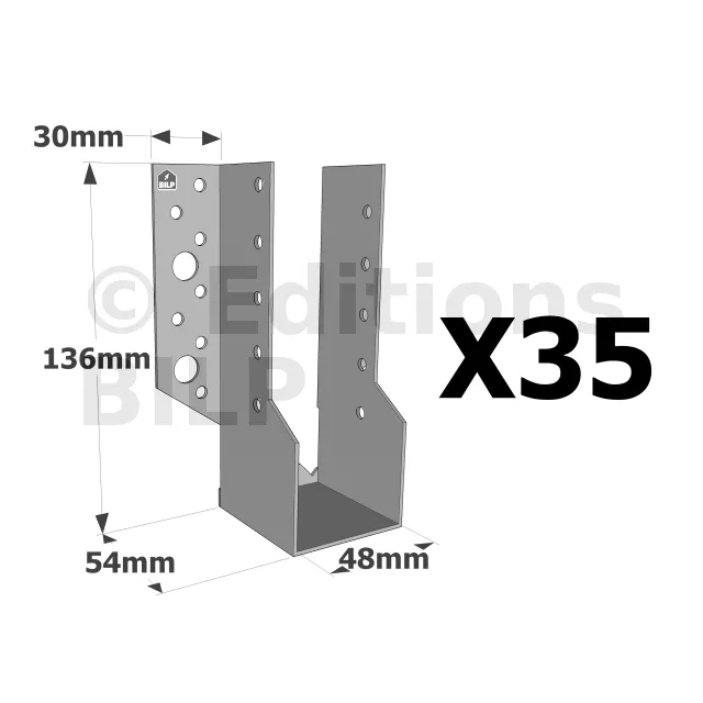 Sabots à ailes extérieures, gamme SBE ECONOMIQUE (épaisseur 1,5mm, profondeur 55mm) - Réf. SBE48/136_35