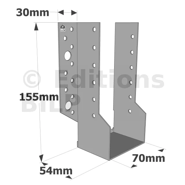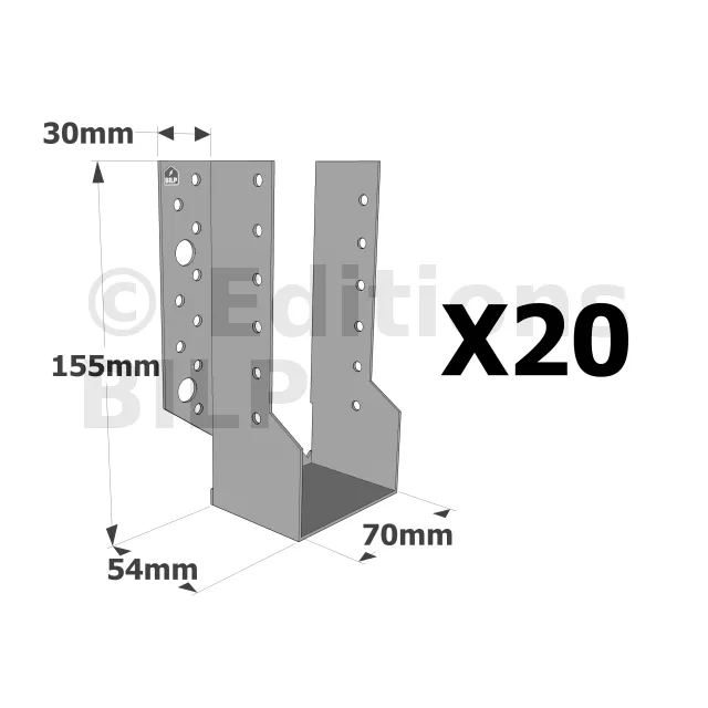Sabots à ailes extérieures, gamme SBE ECONOMIQUE (épaisseur 1,5mm, profondeur 55mm) - Réf. SBE70/155_20