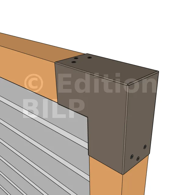 Il est utilisé dans un angle extérieur. Ce connecteur va permettre de raccorder une poutre 90x90mm perpendiculairement à une autre poutre ou à un poteau vertical 90x90mm.