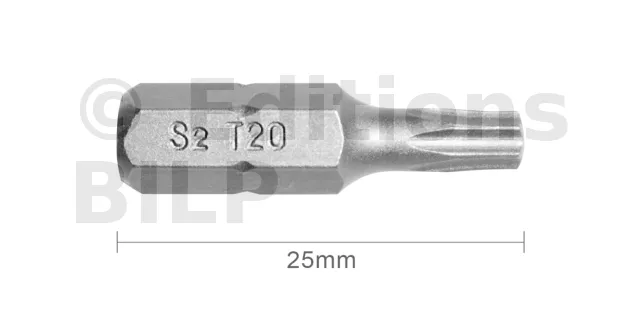 Embout T20 25mm (Qualité Professionnelle, Acier S2) - lot de 5 embouts - Réf. EmboutT20_5