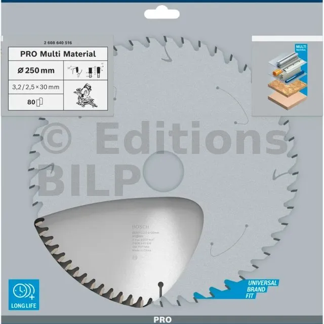 Lame de scie circulaire PRO 250 x 30 x 3.2 mm - 80 dents - Multi matériaux - Réf. 2608640516