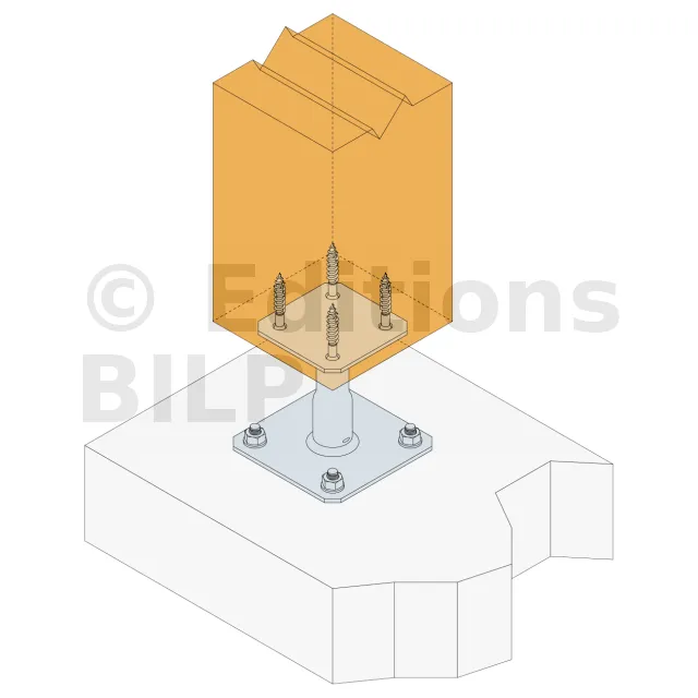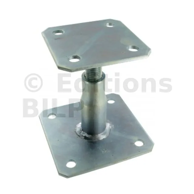Ce modèle de pied de poteau est réglable en hauteur. Simple et rapide à installer, il peut être réglé sur le chantier.