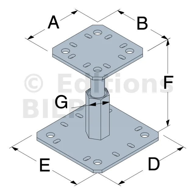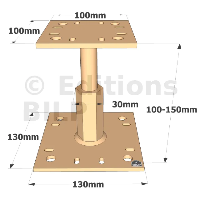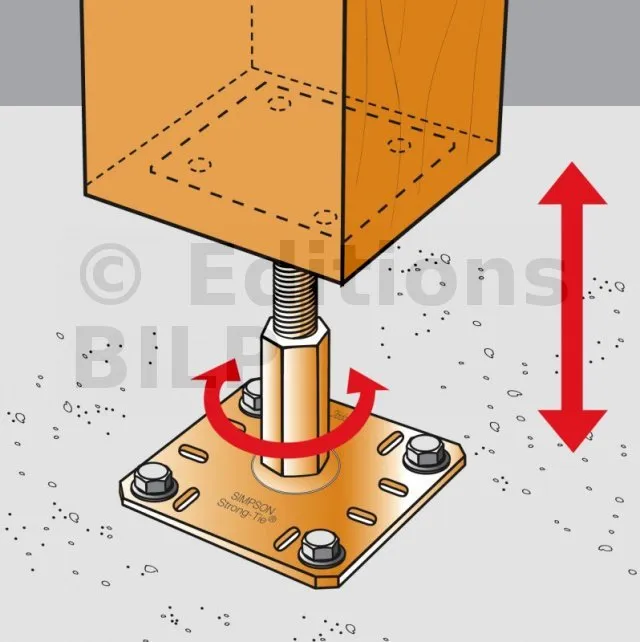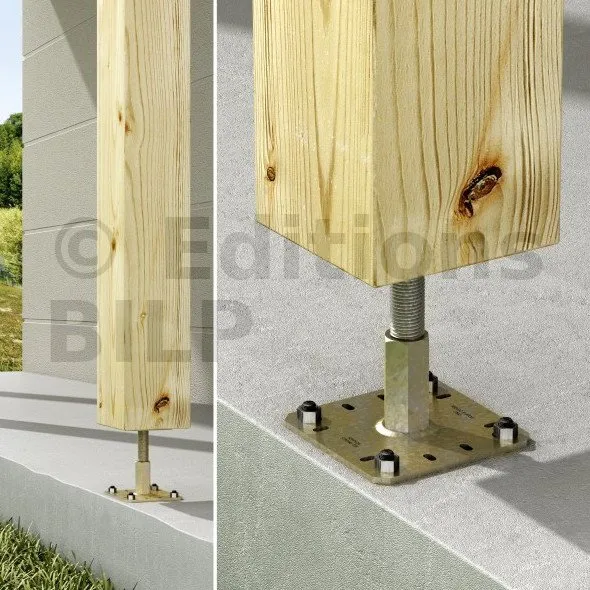 Les pieds de poteau PPRC sont réglables en hauteur. Simples et rapides à installer, ils peuvent être réglés sur le chantier.