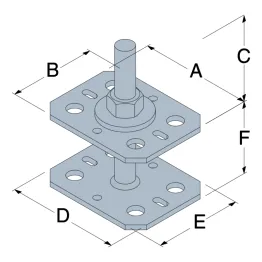 Pied de poteau mini réglable, hauteur (B) : 30 à 90mm, cdt : 1 pièce - Réf. APB7090/100