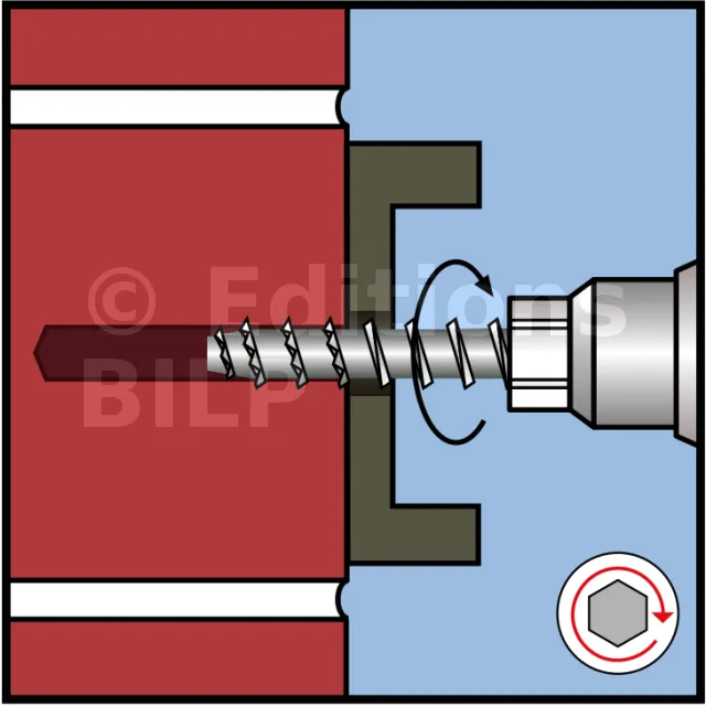 - Vis démontable pour fixations temporaires.