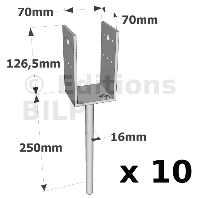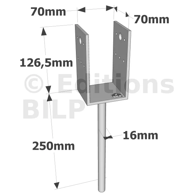 Pieds de poteau en U à sceller - Réf. PPD70/70G_10