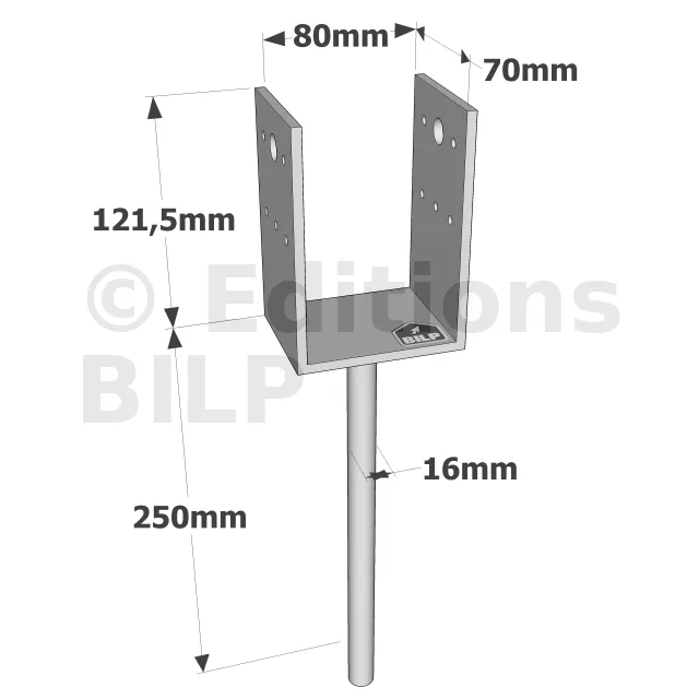 Pieds de poteau en U à sceller - Réf. PPD80/70G