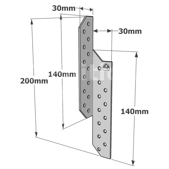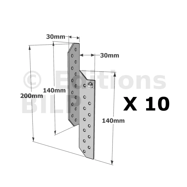 Patte de solivage DROITE - 30x200x1.5mm - Réf. PSD200/30/1.5_10