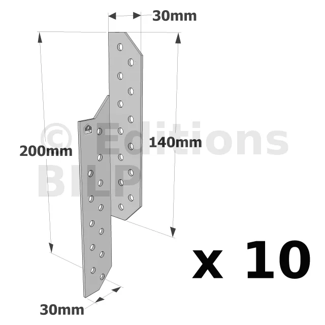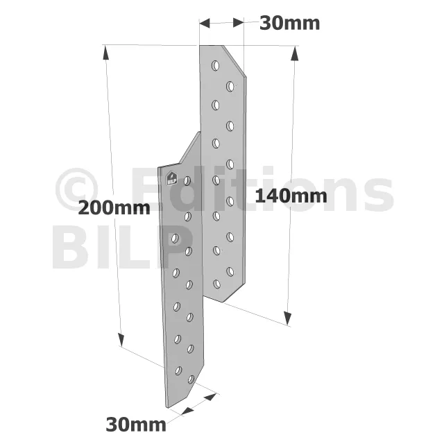 Patte de solivage GAUCHE - 30x200x2mm - Réf. PSG200/30/2_10