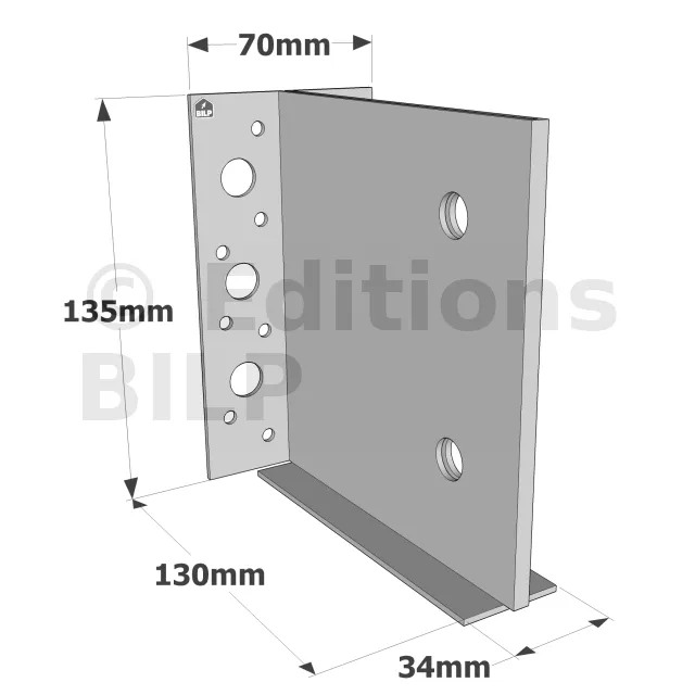 L‘étrier à âme intérieure permet un assemblage discret sur support bois. Le talon intérieur positionne l’étrier par rapport au bois facilitant le montage des broches.