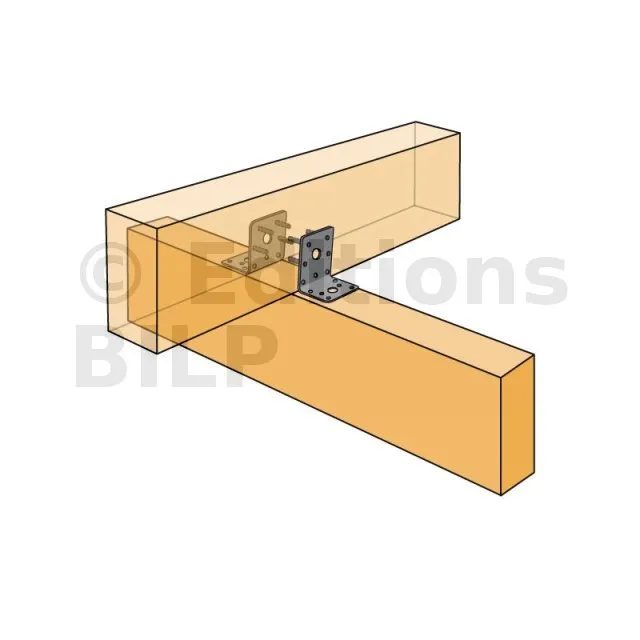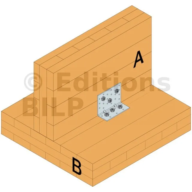 - Fixation bois/bois - type poutre/poutreAile A : 9 ; Aile B : 7 ; type : CNA Ø4.0x35 ou Ø4.0x50 mm - Assemblage avec 2 équerres