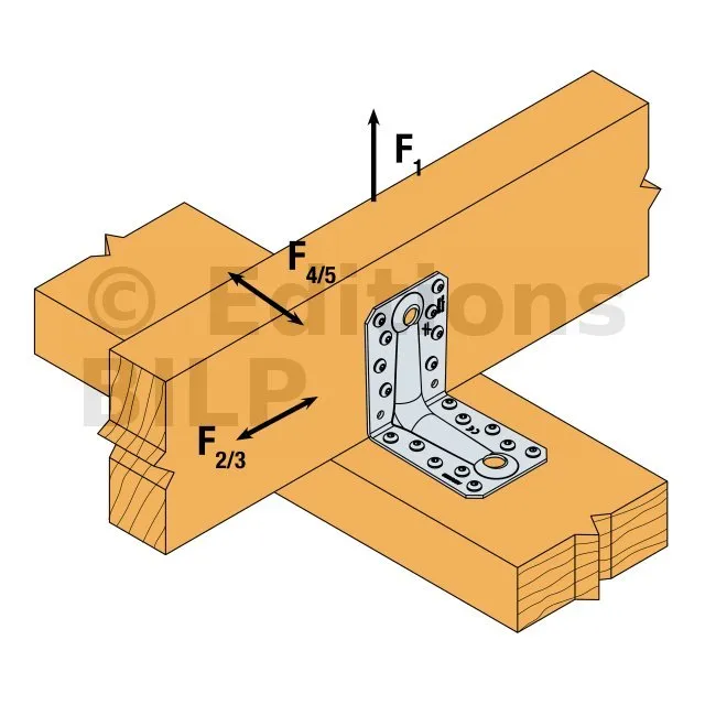 Pour obtenir les valeurs de résistance pour une seule équerre, il convient de diviser par deux les valeurs du tableau ci-dessus à condition que la poutre portée soit bloquée en rotation. Consulter notre ETE-06/0106 si la poutre est libre en rotation.