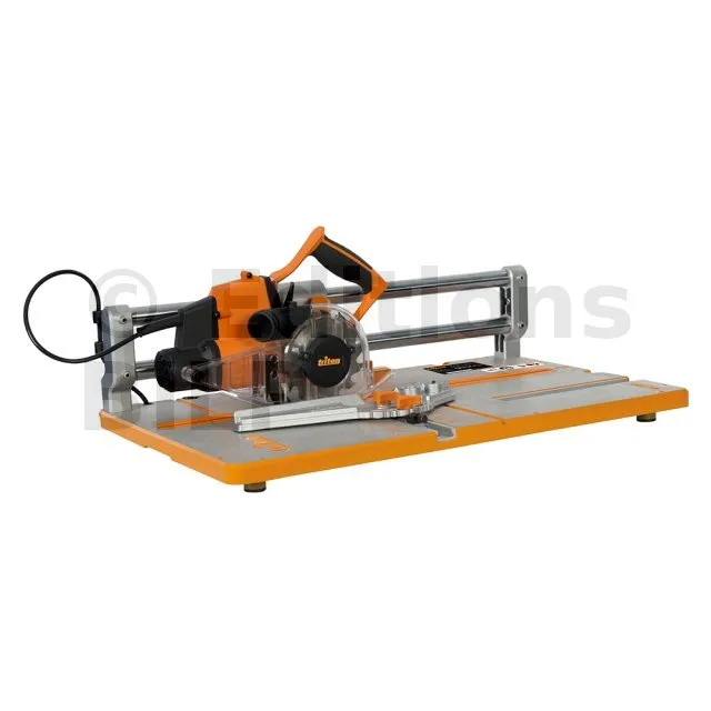 Puissance 910 W, diamètre 127 mm. Utilisable comme module complémentaire au Workcentre TWX7 ou comme outil indépendant sur établi. Embase en fonte d’aluminium avec graduations métriques et impériales. Lame de scie à dents fines permettant d’obtenir un tranchant net et régulier. La scie peut être utilisée en mode stationnaire sur établi ou en mode libre pour réaliser des coupes transversales et d’onglets sur des surfaces plus étendues grâce au rapporteur fourni avec pince à desserrage rapide intégrée. Profondeur de coupe jusqu’à 22 mm. Parfaite pour obtenir des coupes rapides et précises dans différents matériaux dont laminés et parquets, panneaux décoratifs et plinthes. Lame, rapporteur, pince, sac à poussières, clé, bâton-poussoir et éléments pour assemblage avec Workcentre TWX7 fournis.