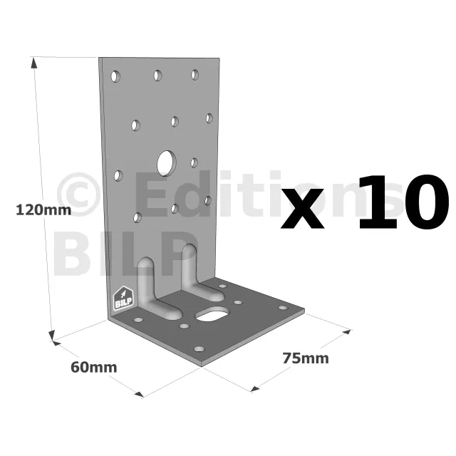 Équerres renforcées CLASSIQUES asymétriques pour le BOIS et le BETON - Réf. E6/2.5_10