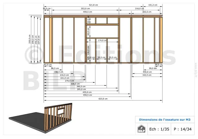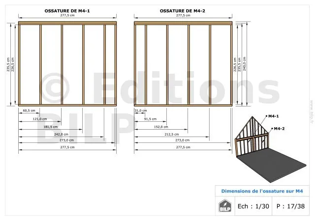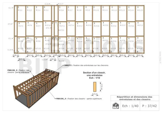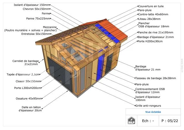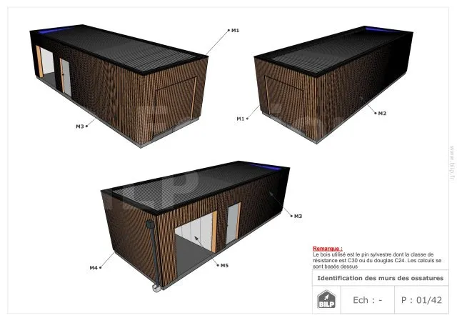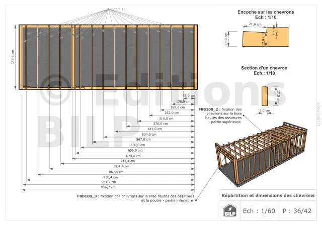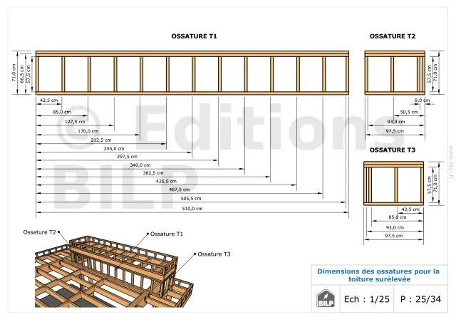 Les plans de structure à l’échelle sont faciles à lire et à comprendre. Ils vous permettrons de réaliser vous-même la structure de votre projet. Les détails de réalisation sont indiqués. Nous calculons et optimisons les dimensions et les sections de pièces de bois.