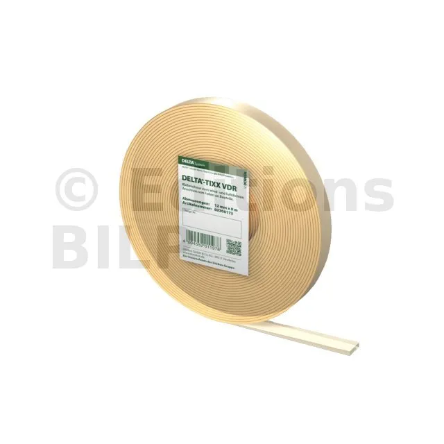 Le cordon adhésif double-face armé à base de résine acrylique avec film pelable en sous-face offre une excellente étanchéité aux raccordements des pare-vapeur DELTA® aux murs de rive et cadres d’ouvrants.