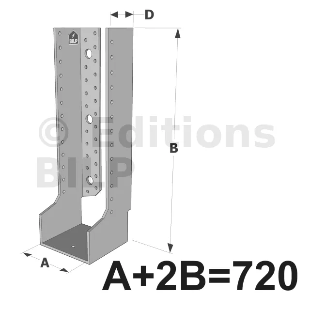 Grands sabots à ailes intérieures, gamme GLI ECONOMIQUE (développé 720mm, épaisseur 4mm, profondeur 90mm) - Réf. GLI720/4X