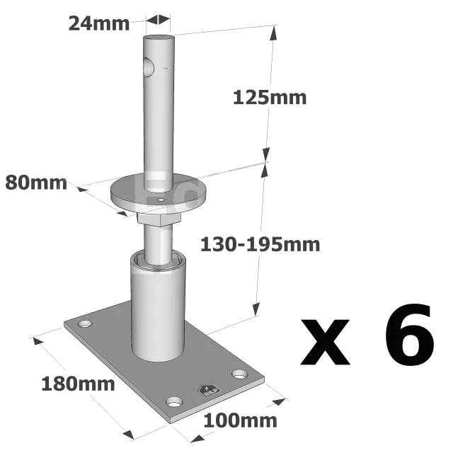Pied de poteau tubulaire réglable fortes charges - Réf. PGS24/130_6