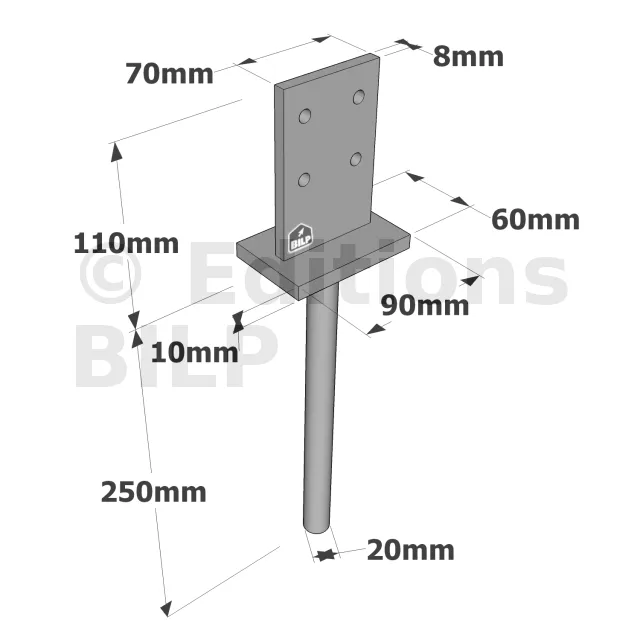 Le PIG est utilisé pour ancrer et protéger les poteaux du pourrissement. Il doit être scellé dans le béton.