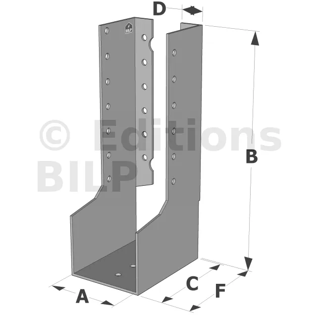 - Robustesse et discrétion : Grâce à leur conception en acier galvanisé, ces sabots sont robustes et résistent aux conditions climatiques difficiles. Les ailes intérieures permettent une intégration discrète, préservant l’esthétique de la structure.