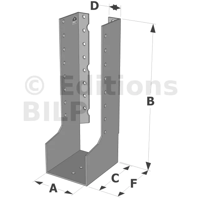 - Robustesse et discrétion : Grâce à leur conception en acier galvanisé, ces sabots sont robustes et résistent aux conditions climatiques difficiles. Les ailes intérieures permettent une intégration discrète, préservant l’esthétique de la structure.