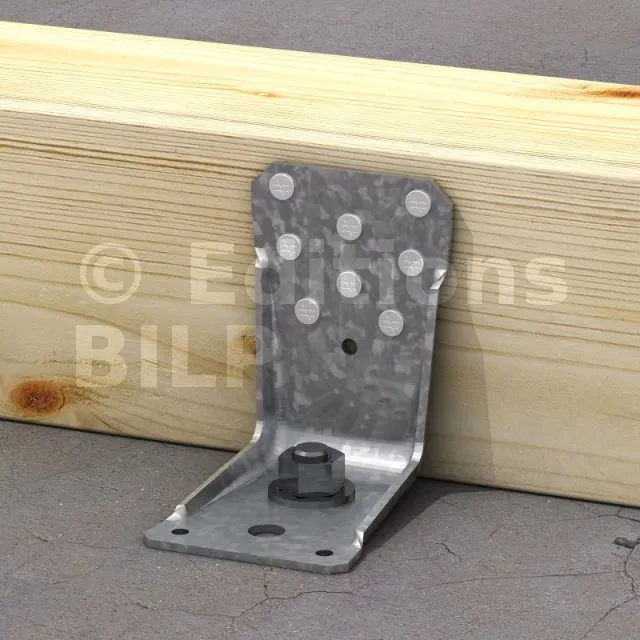 - Permet d‘ancrer solidement le mur ossature bois au sol (préconisé en zone sismique),
