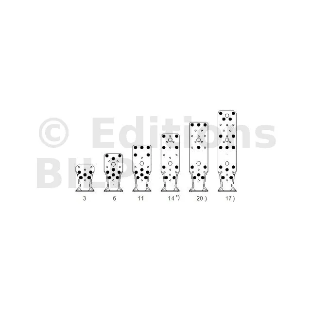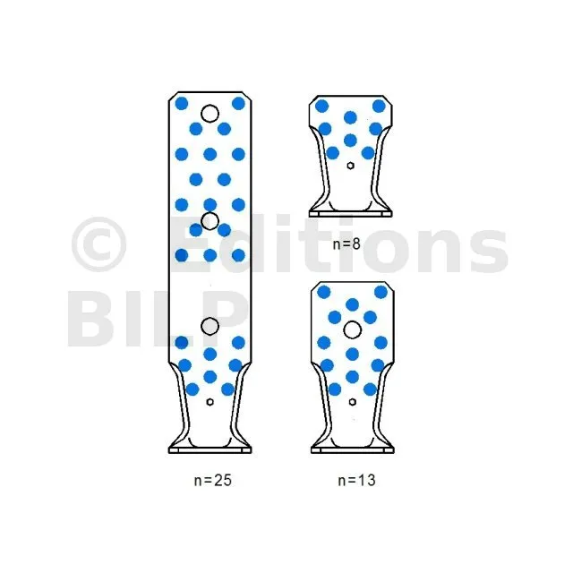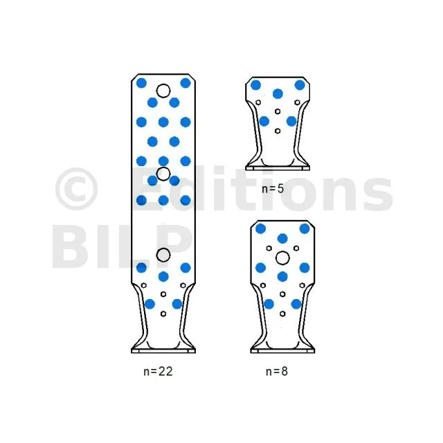 | A | B | C | Ep. | Perçages Aile A | Perçages Aile B | ||||