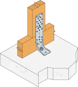 Voir la gamme d’ancrage Simpson Strong-Tie pour trouver le produit adéquat. Les solutions d’ancrage typiques sont BOAXII, SET-XP, WA, AT-HP et dépendent du type de béton, l’entraxe et les distances aux bords.