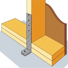 - Permet d‘ancrer solidement le mur ossature bois au sol (préconisé en zone sismique),