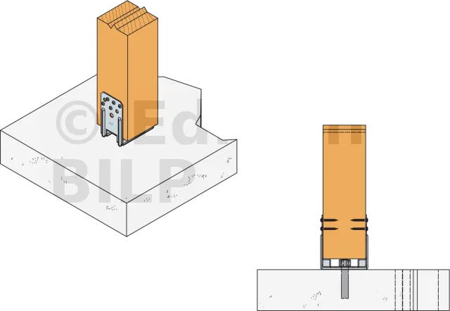 Les embases de poteau PU permettent la fixation de poteaux sur un support existant (balcon, terrasse...) et assurent la protection du poteau des remontées d’humidité (repos à 20 mm du sol).