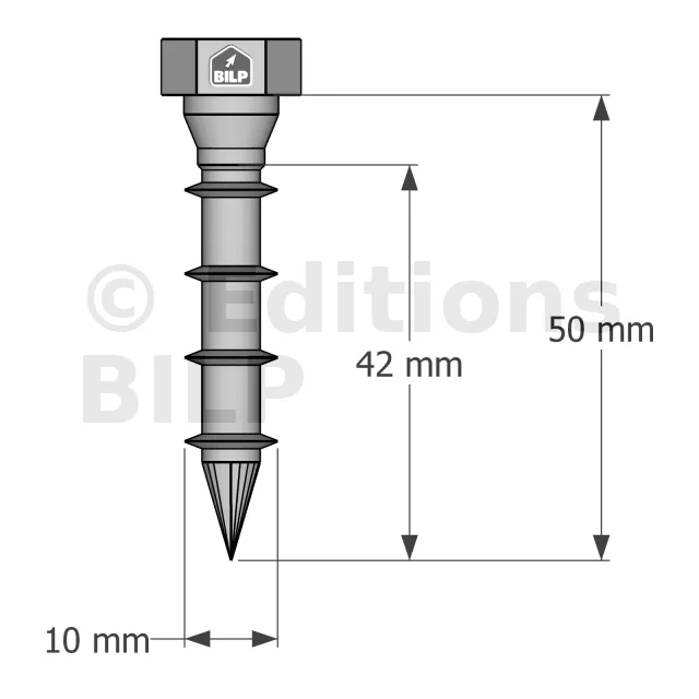 - Marquage de la tête incluant la longueur en mm facilitant le contrôle,