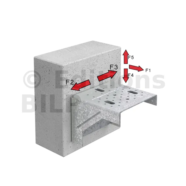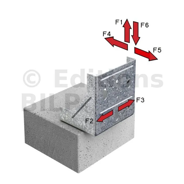Ce connecteur a été développé pour être utilisé avec des murs rideaux bois, fixés sur dalle béton. Il peut être utilisé dans plusieurs configurations en fonction des besoins. Sa forme particulière lui permet de reprendre des charges importantes sans aucune déformation.