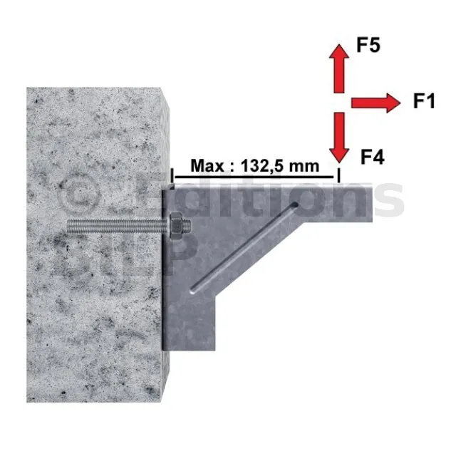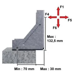 Compte-tenu des charges à reprendre, il est indispensable de vérifier la résistance des ancrages et du béton. En effet, dans certains cas, la résistance de l’ACW155 peut être limitée par la reprise de charge du béton et des ancrages.