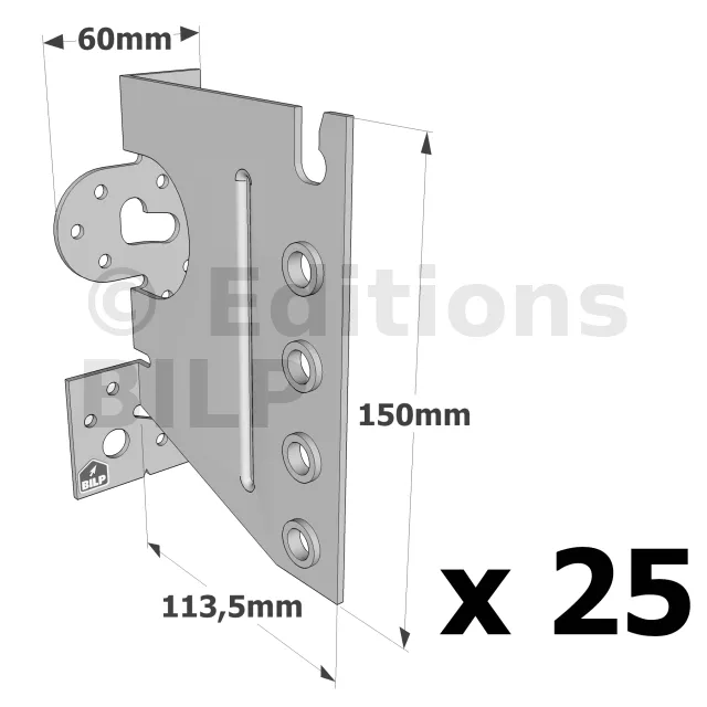 Etrier à âme intérieure à fixer sur le BOIS ou SUPPORT RIGIDE - Réf. CBH150/2.5_25