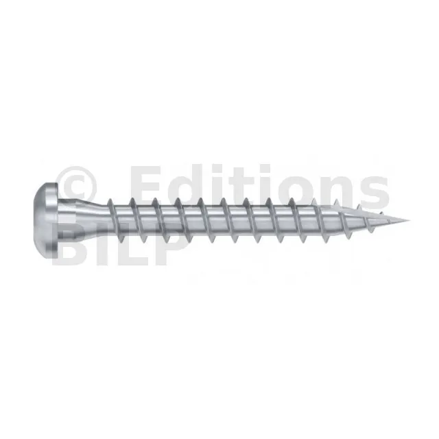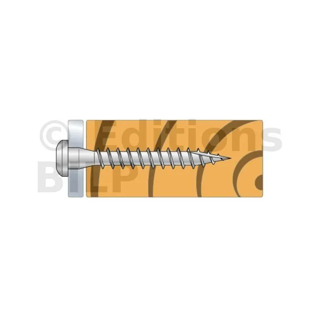 - Le filetage spécifique au bois permet une pénétration facile et rapide dans le bois : pas de fendage du bois,