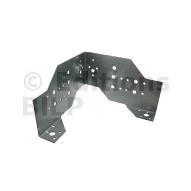 Le connecteur pour panneau bois FCC assure la liaison de murs d‘ossature sur dalle béton. Les trous de pointes et de boulons permettent d‘adapter la fixation en fonction des configurations. Cette référence peut éventuellement être associée à un feuillard perforé type FP30 à fixer sur les montants.