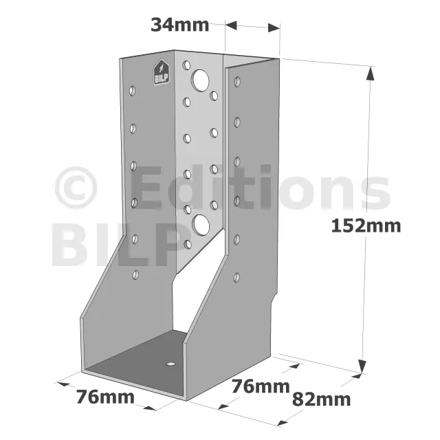 - Robustesse et discrétion : Grâce à leur conception en acier galvanisé, ces sabots sont robustes et résistent aux conditions climatiques difficiles. Les ailes intérieures permettent une intégration discrète, préservant l’esthétique de la structure.