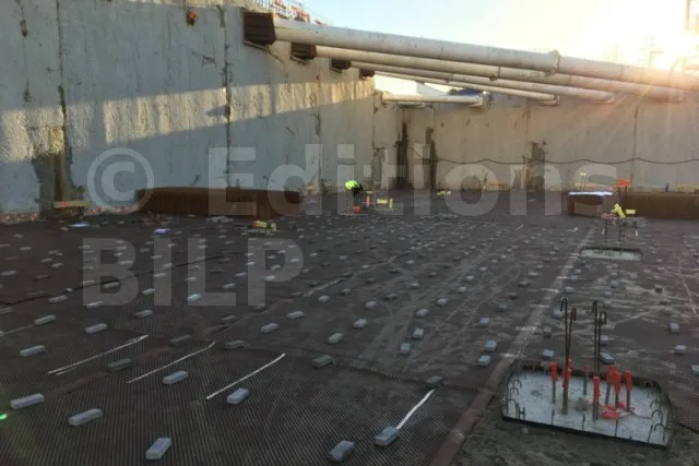 - La couche protectrice, filtrante et drainante utilisée en tant que drainage sous dallage ou tapis drainant permet de limiter les pressions hydrostatiques sous les dalles, ainsi que de collecter et diriger par gravité les infiltrations sur toute la surface du fond de forme.
