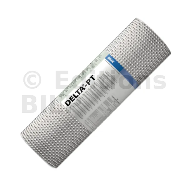 - DELTA®-PT possède des alvéoles de 8 mm de hauteur qui créent un espace isolé entre la paroi humide et la nouvelle couche de finition. Cette configuration permet de créer une nouvelle surface saine et sans humidité ni moisissure.