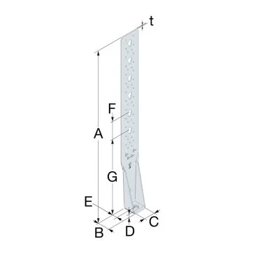 Ancrage pour montant d’ossature 90x790x60mm épaisseur 3mm - Réf. HTT31