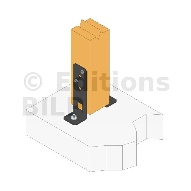 L’installation de deux pieds de poteau est nécessaire pour des sections de poteaux carrés jusqu’à 150x150 mm. Pour des sections plus importantes (250x250 maximum), l‘utilisation de 4 pieds par poteau est préconisée.